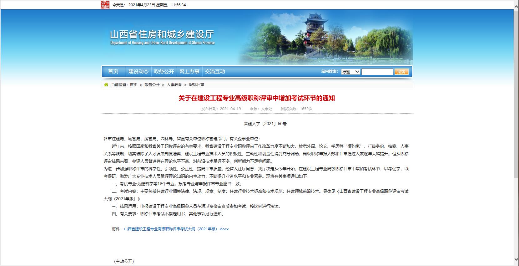 查看詳細(xì)關(guān)于在建設(shè)工程專業(yè)高級(jí)職稱評(píng)審中增加考試環(huán)節(jié)的通知發(fā)布日期:2021-04…