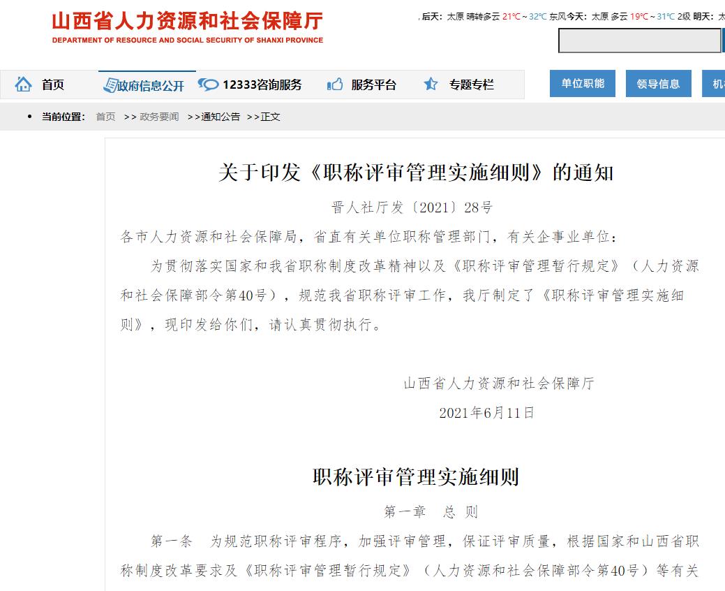 關(guān)于印發(fā)《職稱評(píng)審管理實(shí)施細(xì)則》的通知 晉人社廳發(fā)〔2021〕28號(hào)