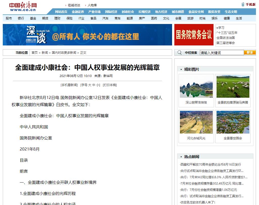 查看詳細(xì)全面建成小康社會:中國人權(quán)事業(yè)發(fā)展的光輝篇章2021年08月12日 10:10 …