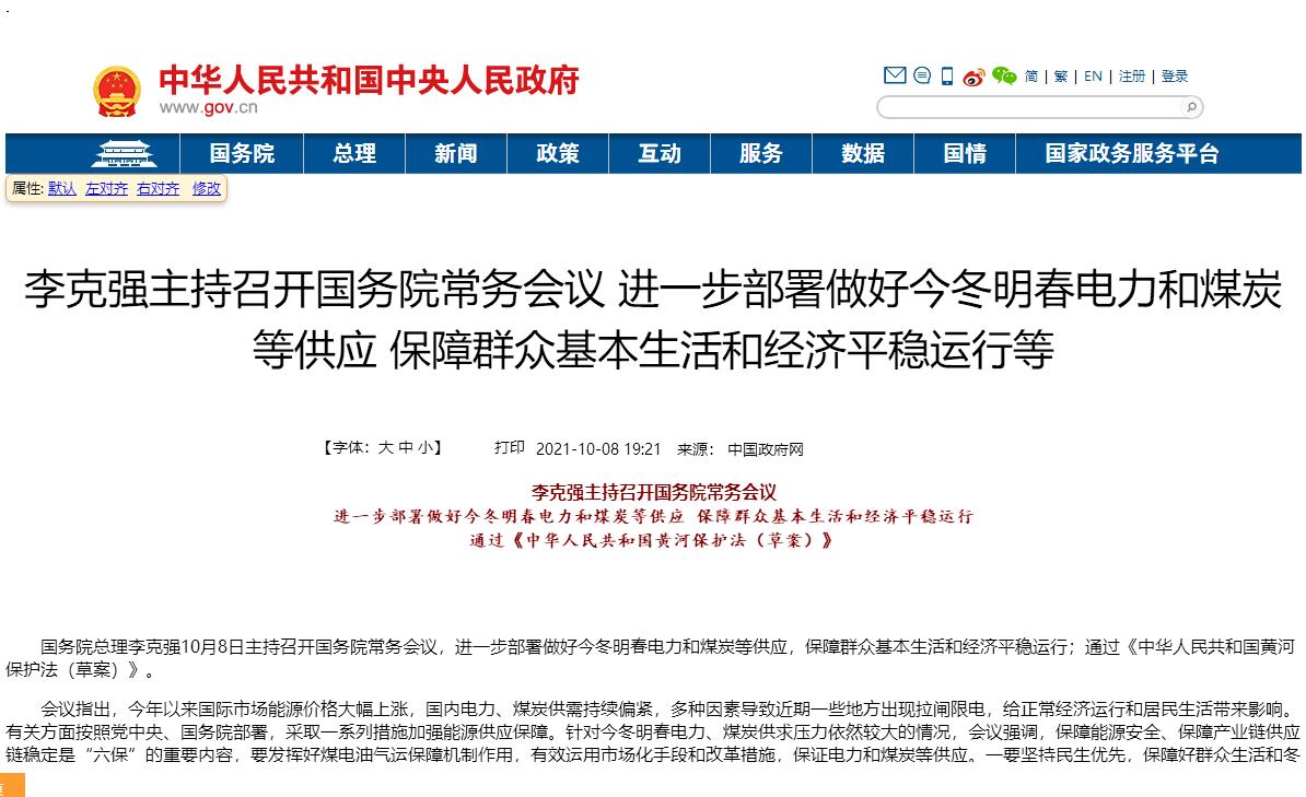 李克強(qiáng)主持召開國務(wù)院常務(wù)會議 進(jìn)一步部署做好今冬明春電力和煤炭等供應(yīng) 保障群眾基本生活和經(jīng)濟(jì)平穩(wěn)運(yùn)行等