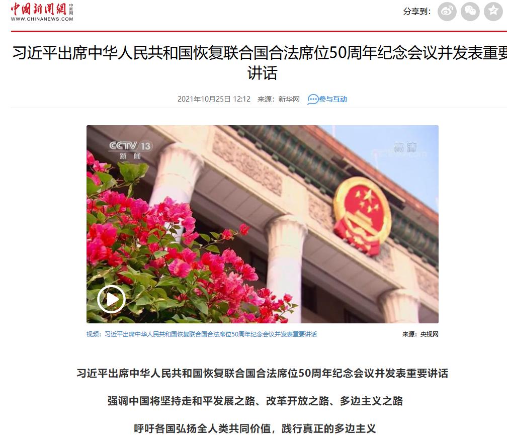 習(xí)近平出席中華人民共和國恢復(fù)聯(lián)合國合法席位50周年紀(jì)念會議并發(fā)表重要講話